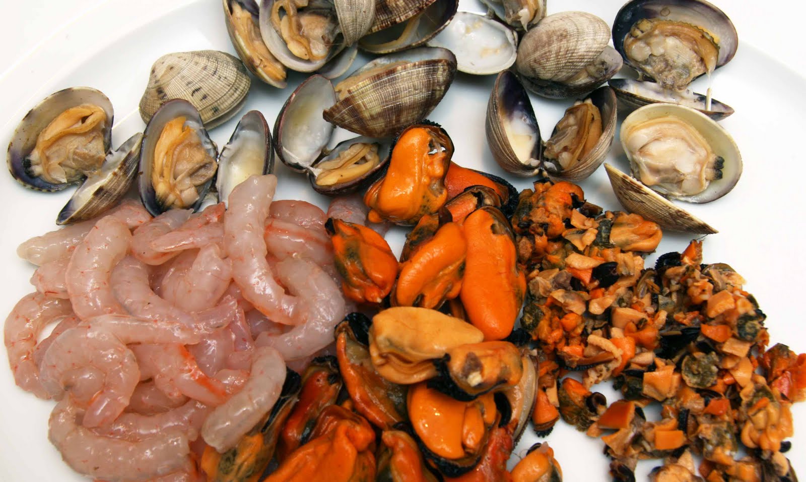 A los veinte minutos añadiremos las colas de gambas crudas. Cuando el arroz esté en su punto, blando y suelto, se añade el pescado desmenuzado, los mejillones picados y las almejas.